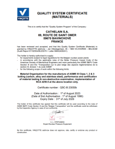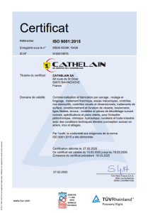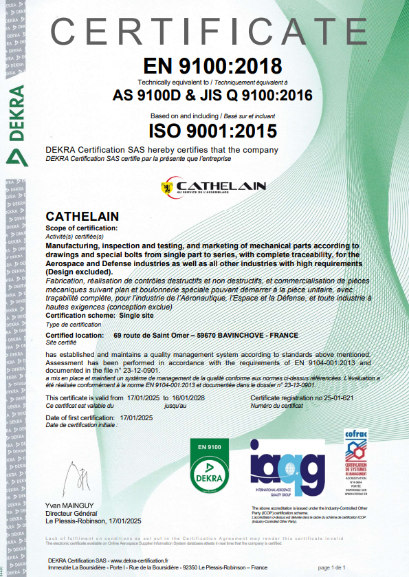 CATHELAIN S.A.S. se distingue de la plupart des fournisseurs actuels en éléments d’assemblage. Nous garantissons l’origine matière utilisée, en délivrant les certificats des aciéries et des intervenants de toute la chaîne. La traçabilité de nos pièces est totale de l’origine matière aux différents Process de nos fabrications.
